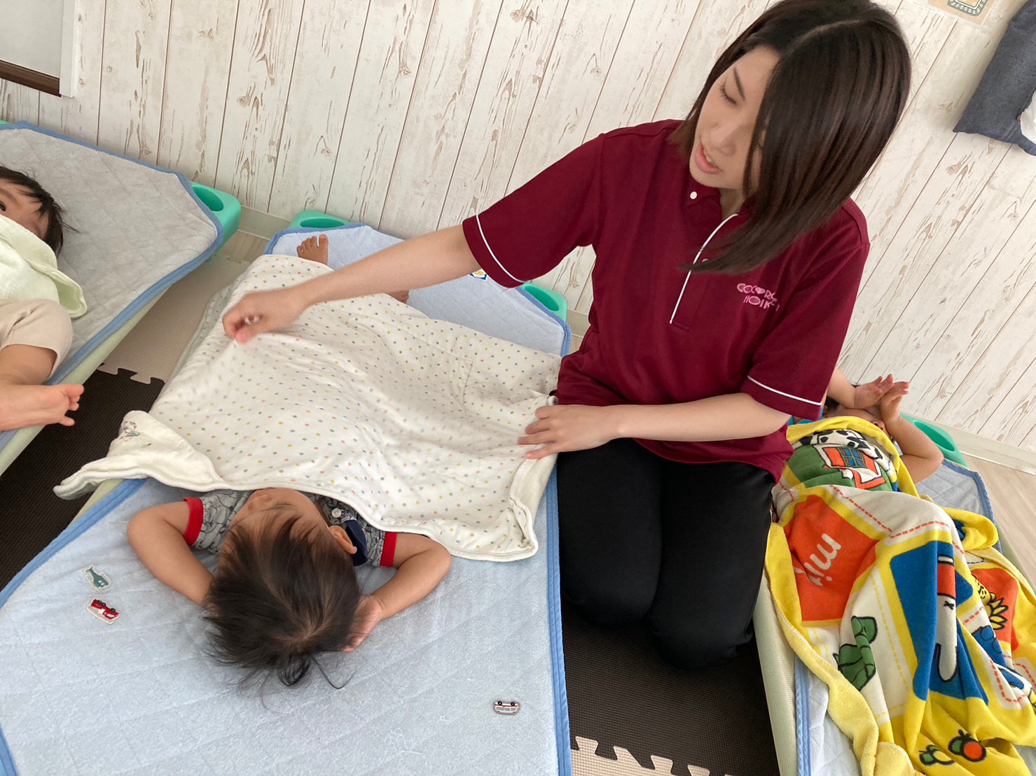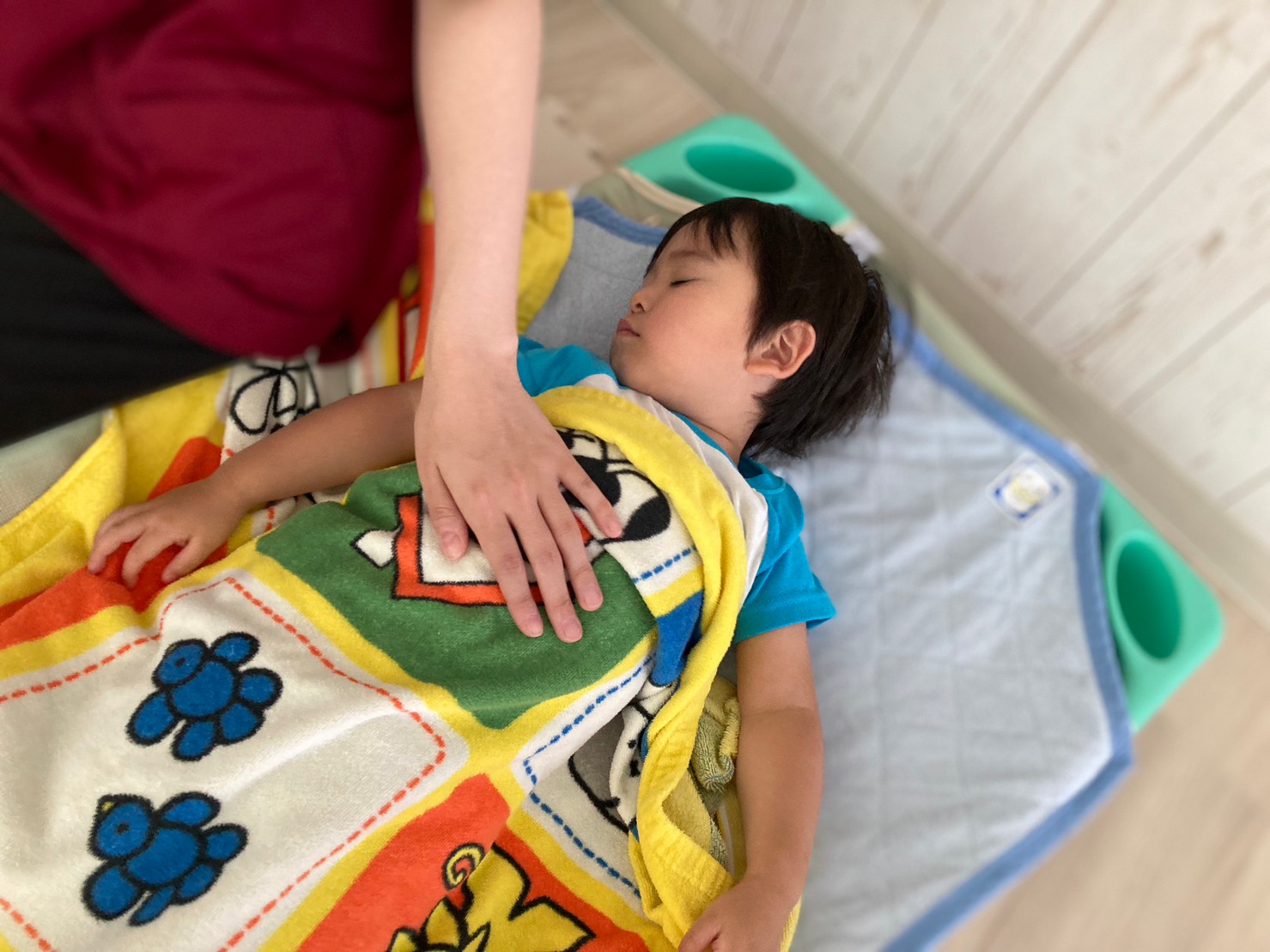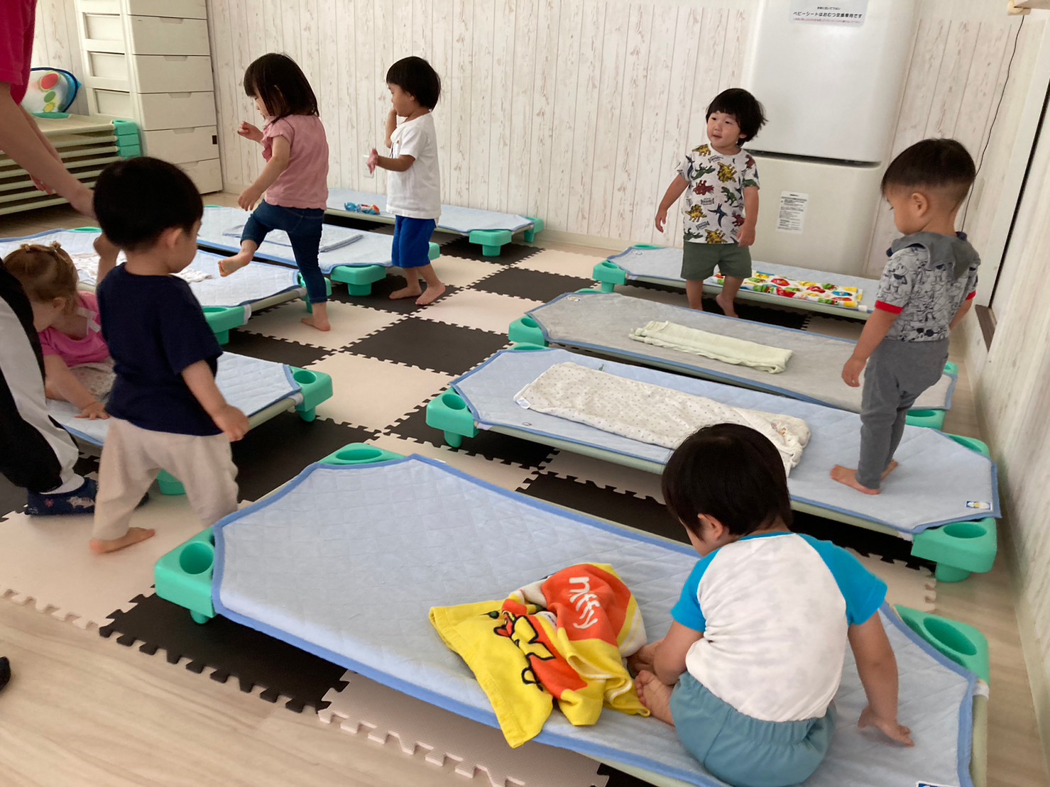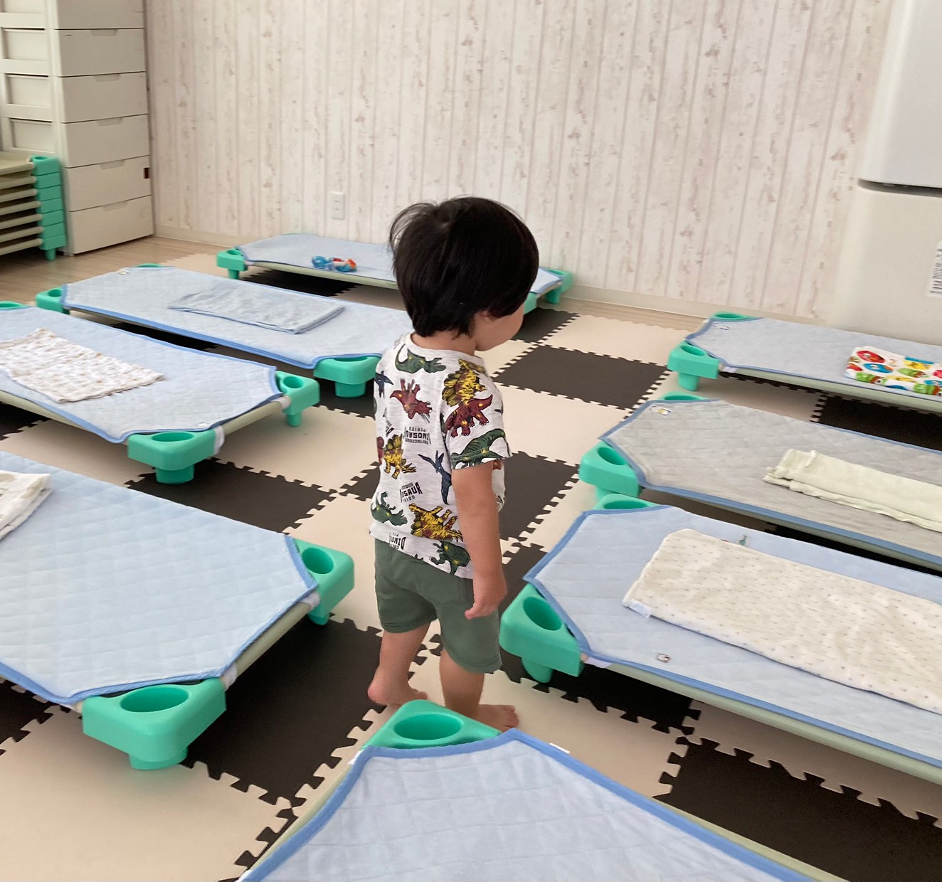 「せんせい、おやすみなさい‥」とご挨拶をして、コットへ行きます。