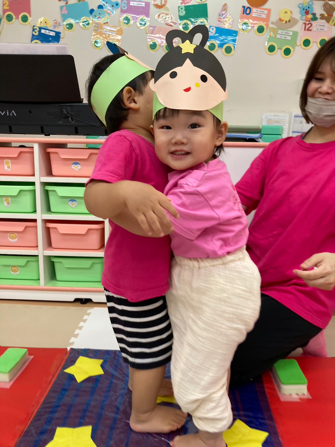 「たっちー!」「やったー」と、手を合わせたりハグしたりして、子どもたちは大喜びでした。