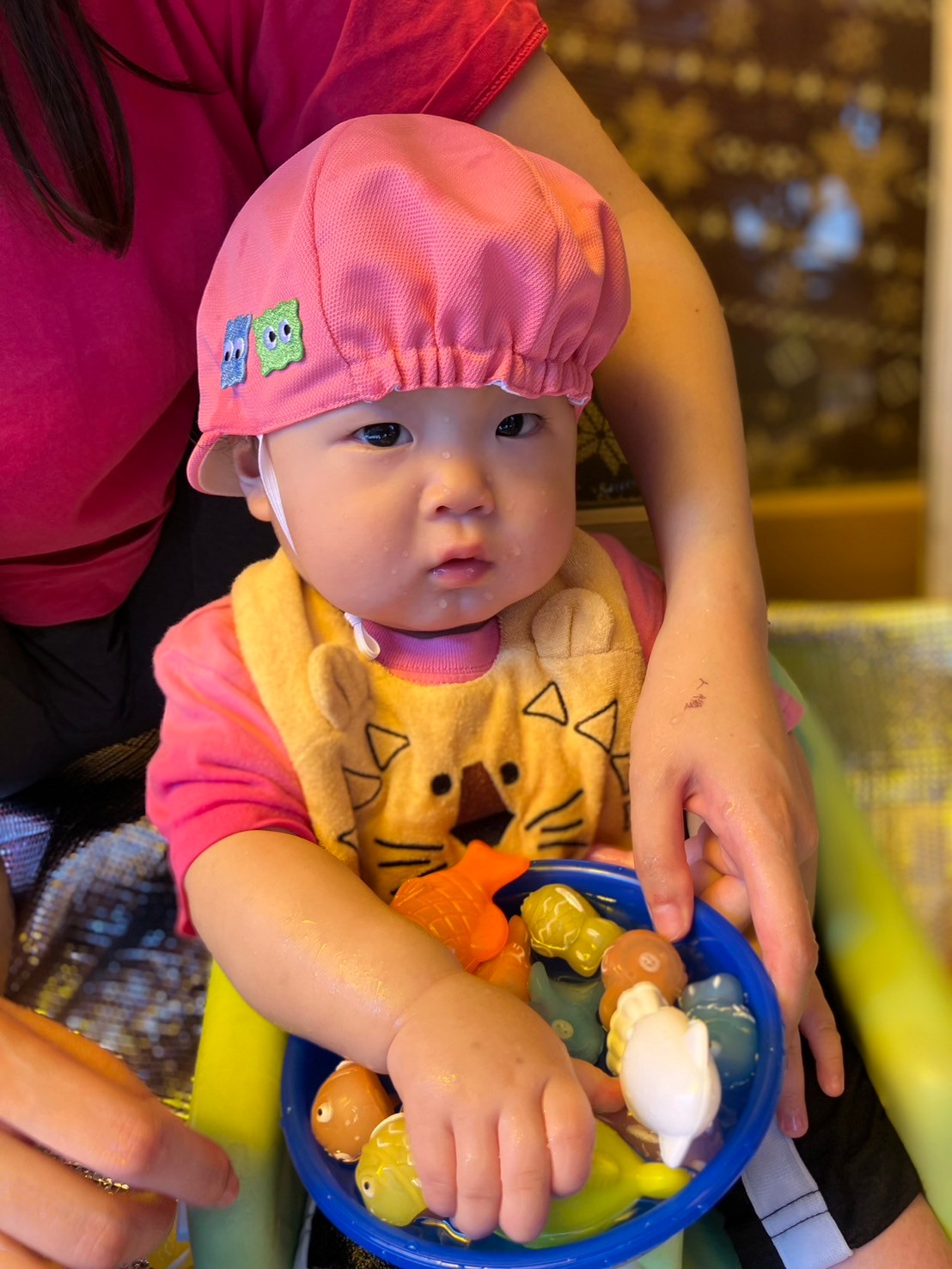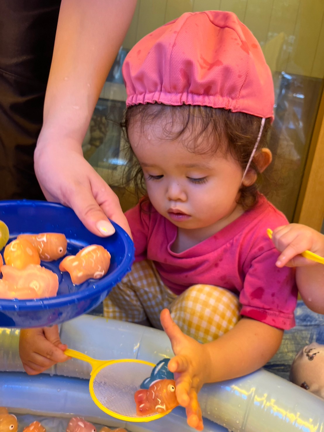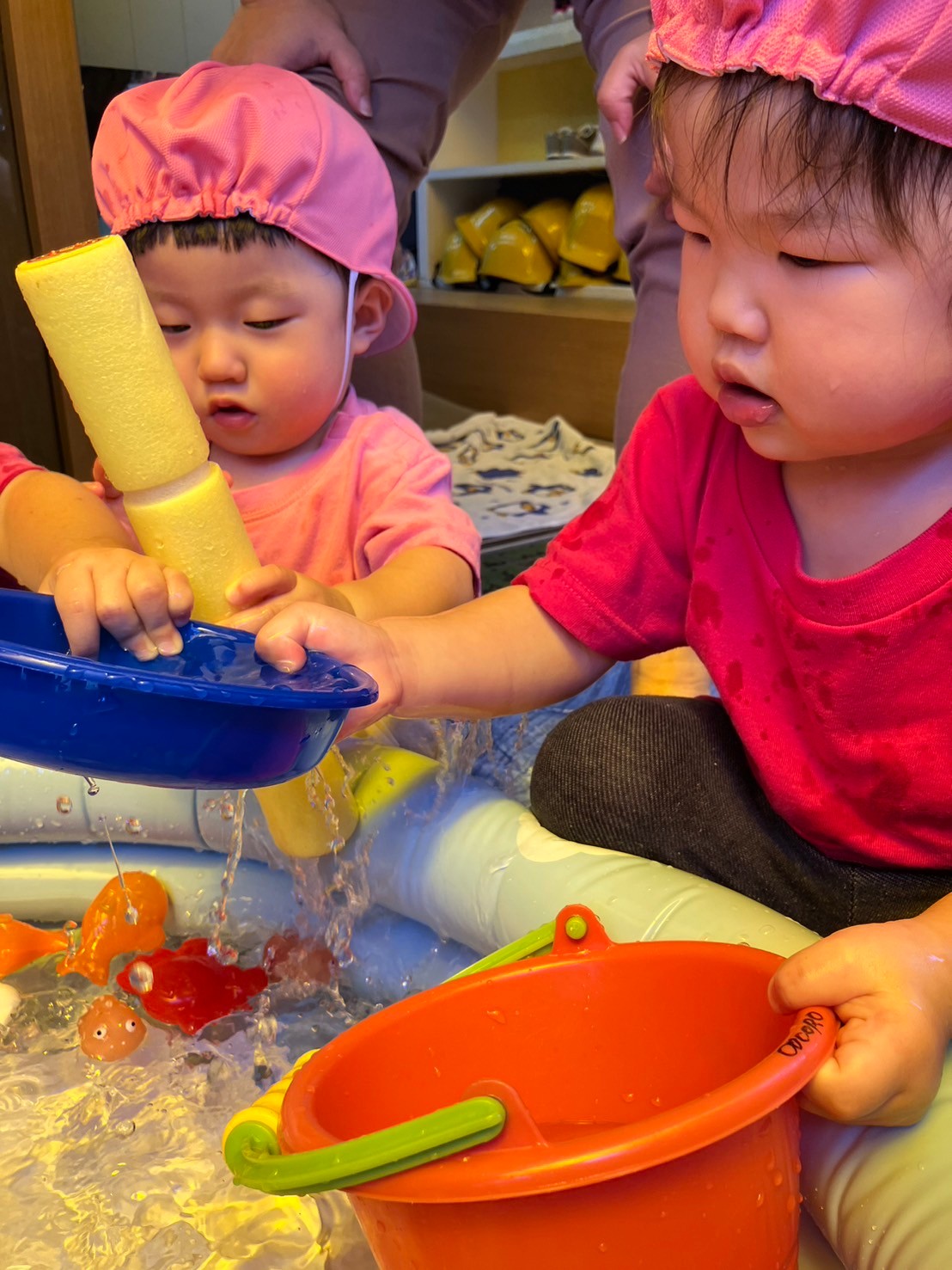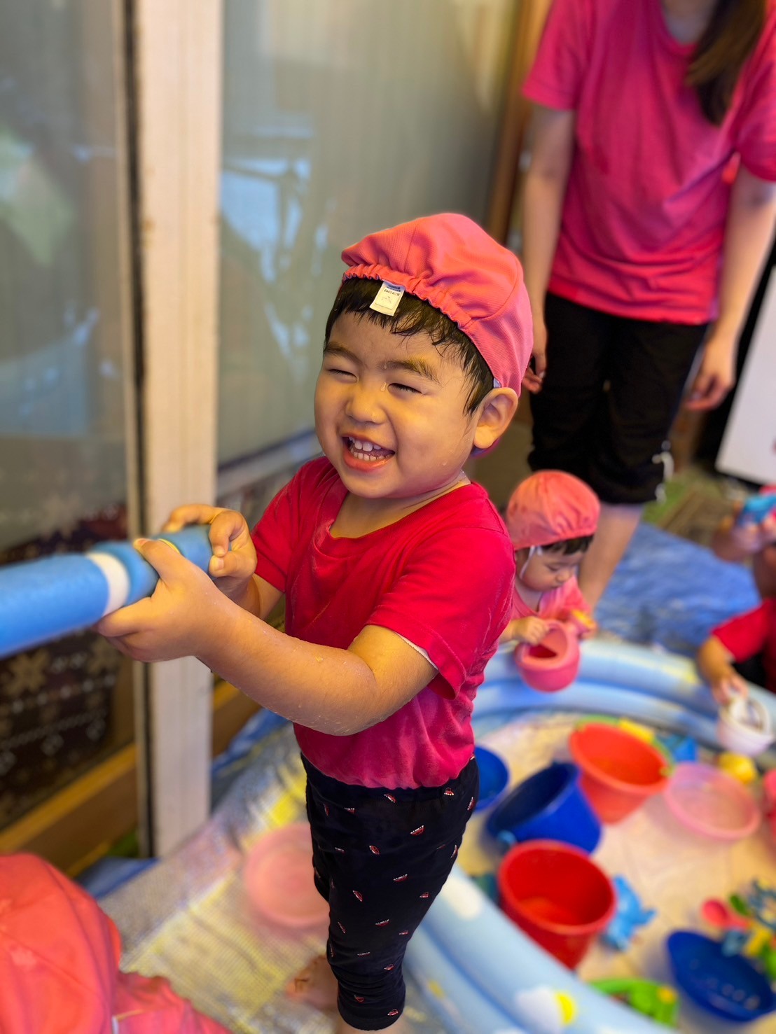 できた水風船を握って潰したり、潰れてびっくりしている表情がとっても可愛い子ども達です。