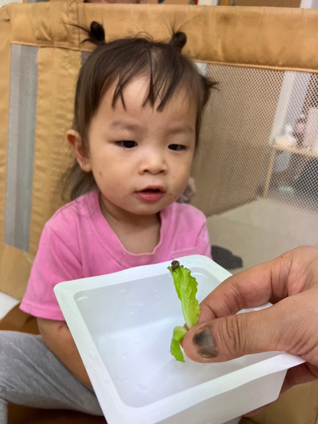 カタツムリが大きく成長していくのを見守ってあげる姿が微笑ましいです。