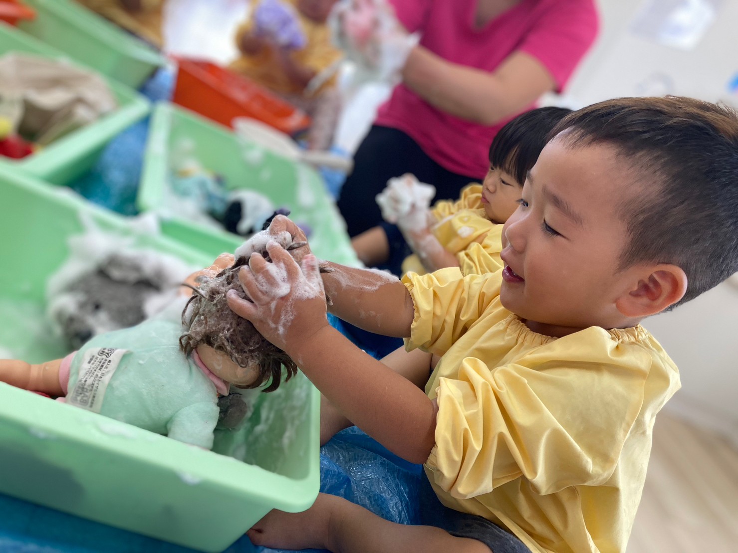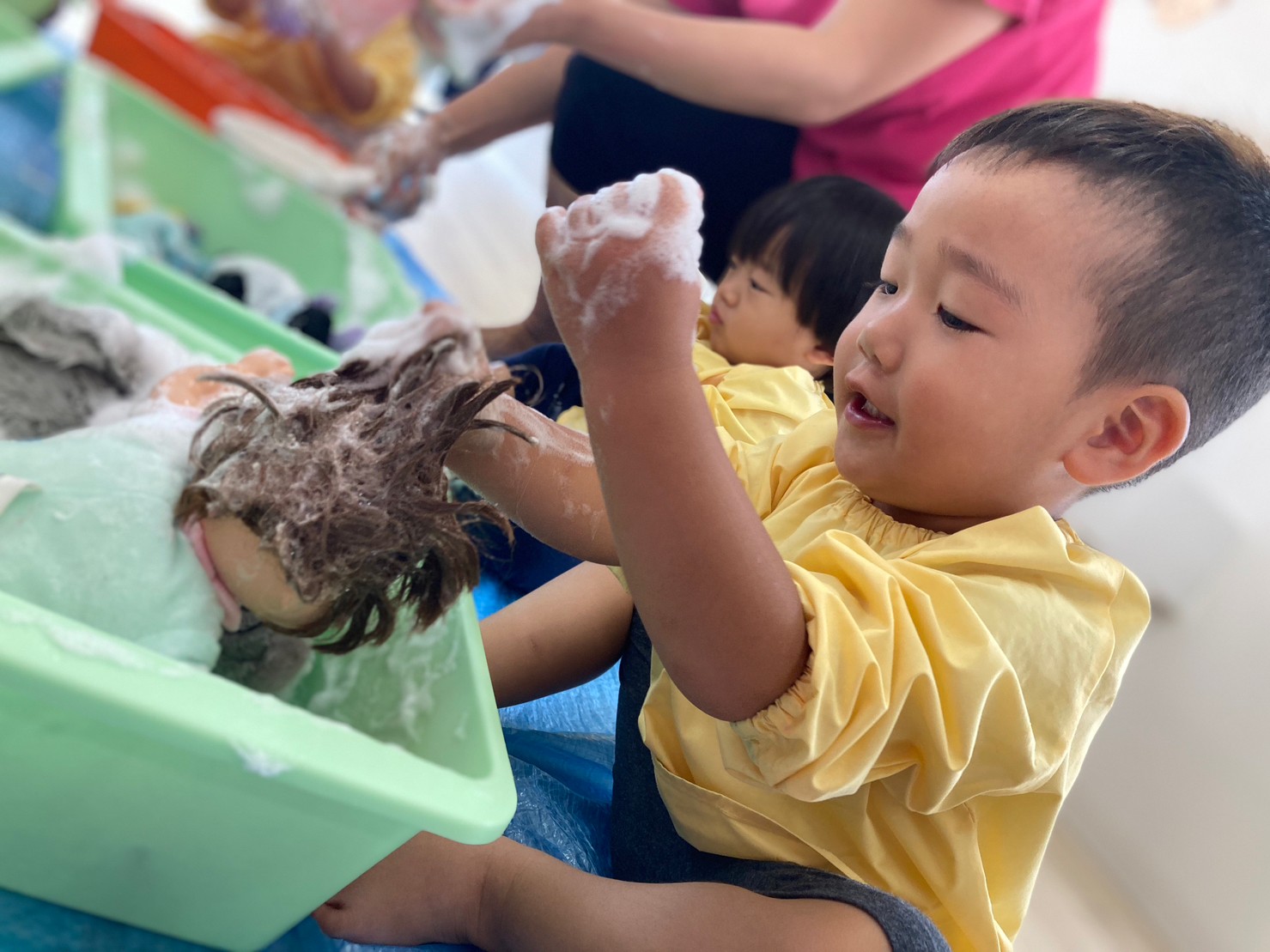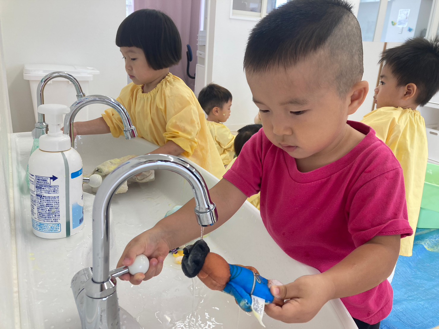 「こうやったら、きれいになるねんでー!」と、ぬいぐるみを裏返し、隅々まで洗っていましたよ。