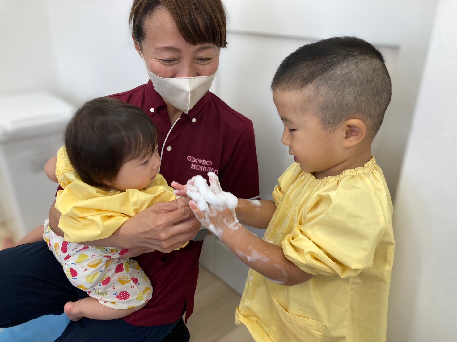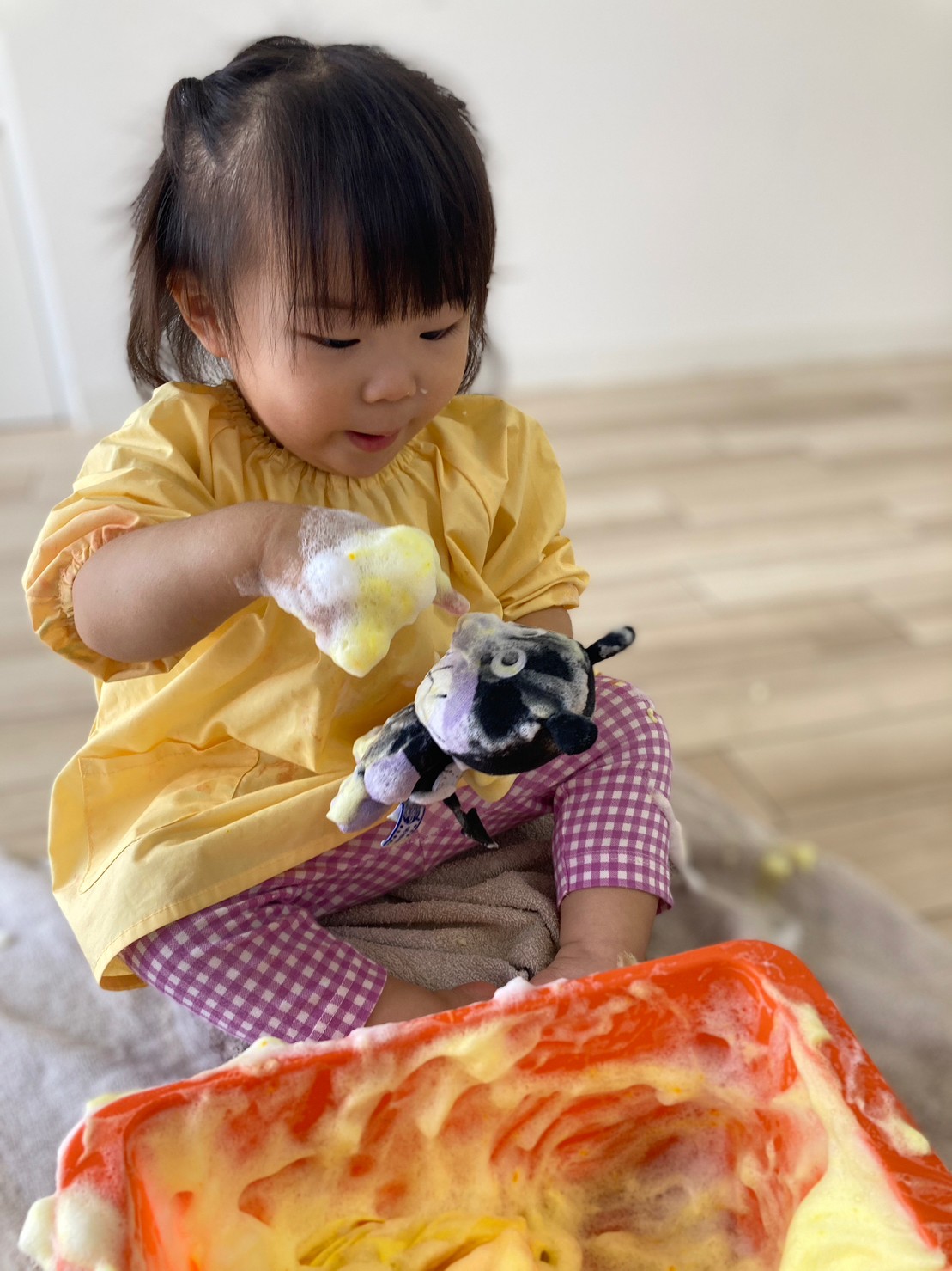 「あわあわ、いっぱ〜い!」と嬉しそうに話す子ども達。