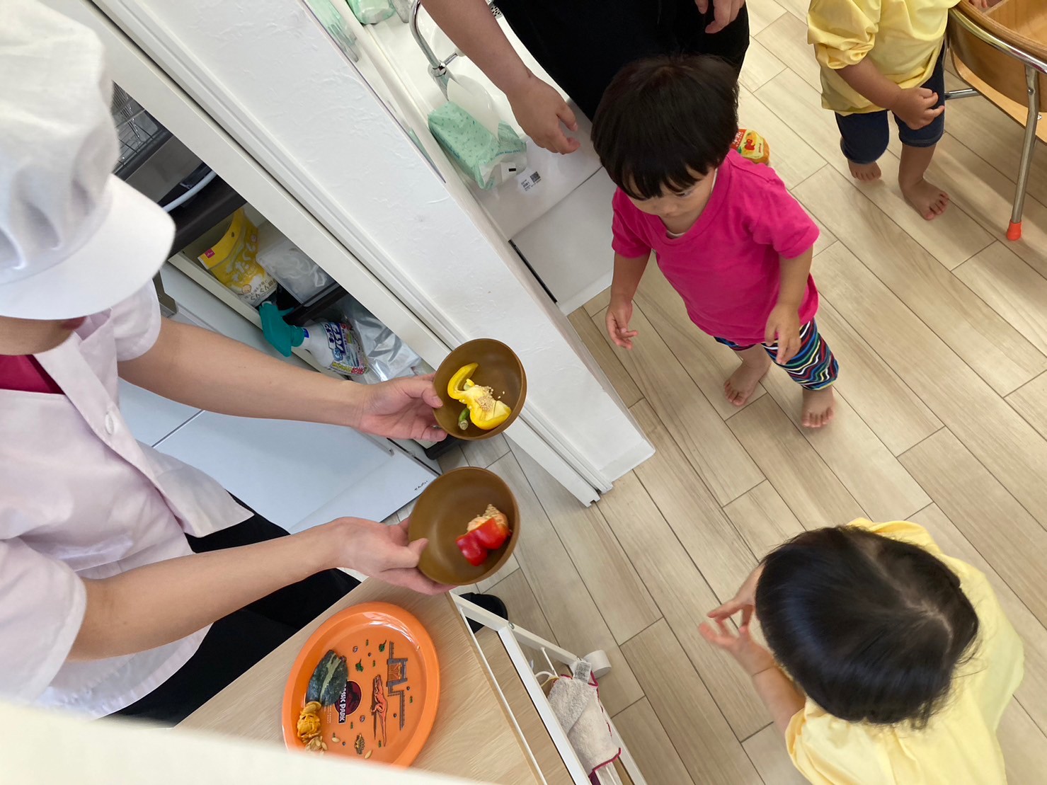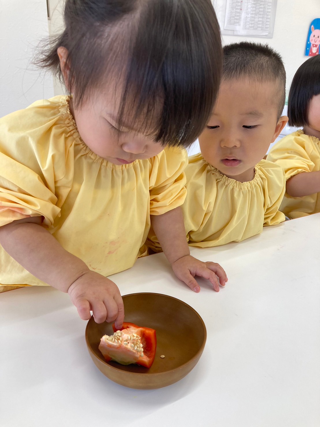 「パプリカってな〜に?ピーマンじゃないの?」と頭にハテナマークがいっぱいの子ども達。