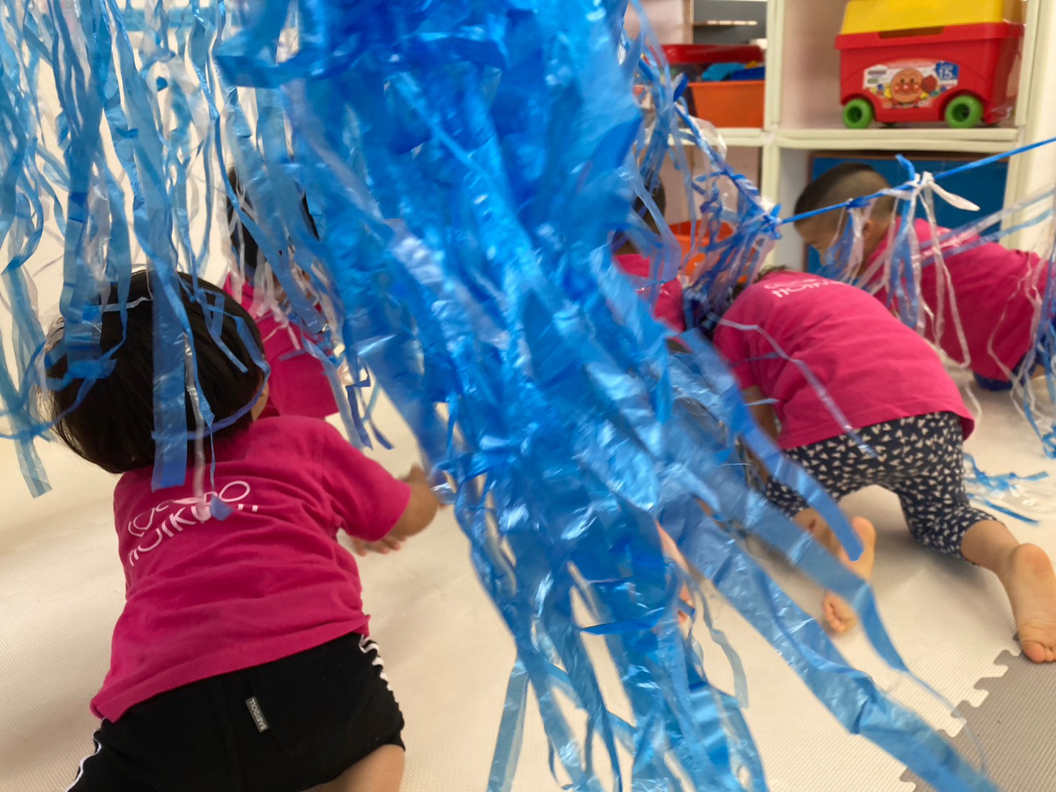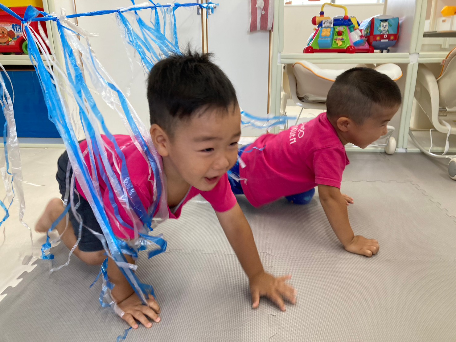 その後、天の川に見立てたスズランテープの中をくぐって星探しをしました。