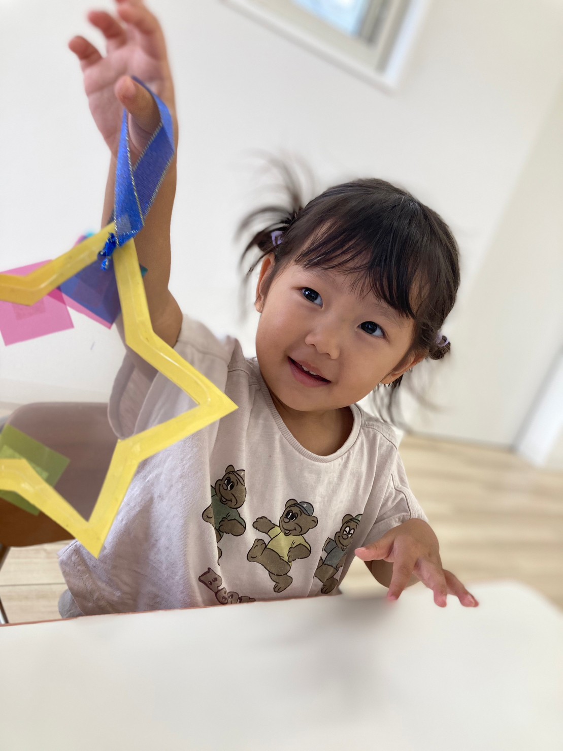 「みてみて〜」と星を揺らして遊ぶ子ども達。完成すると嬉しそうに、星を見せてくれました。