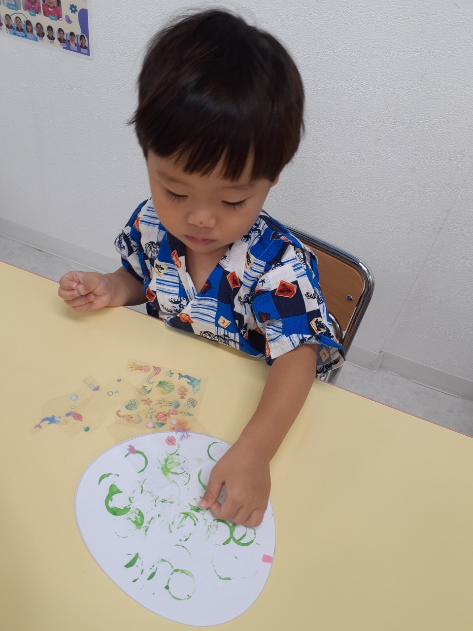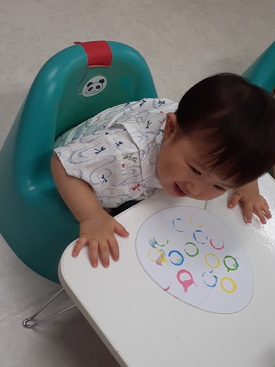 「つめたい」「きもちいい!」といつもと違った感触に驚いたり、喜んだりあそびを通して様々な表情を見せてくれました!!