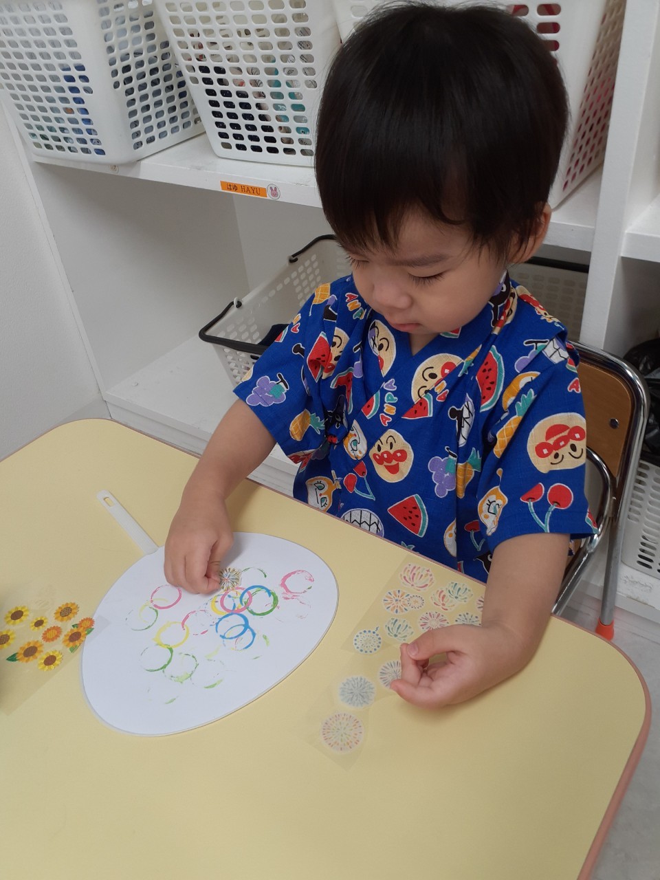 制作ではうちわ作りと各個人の動物のお面を作りました。