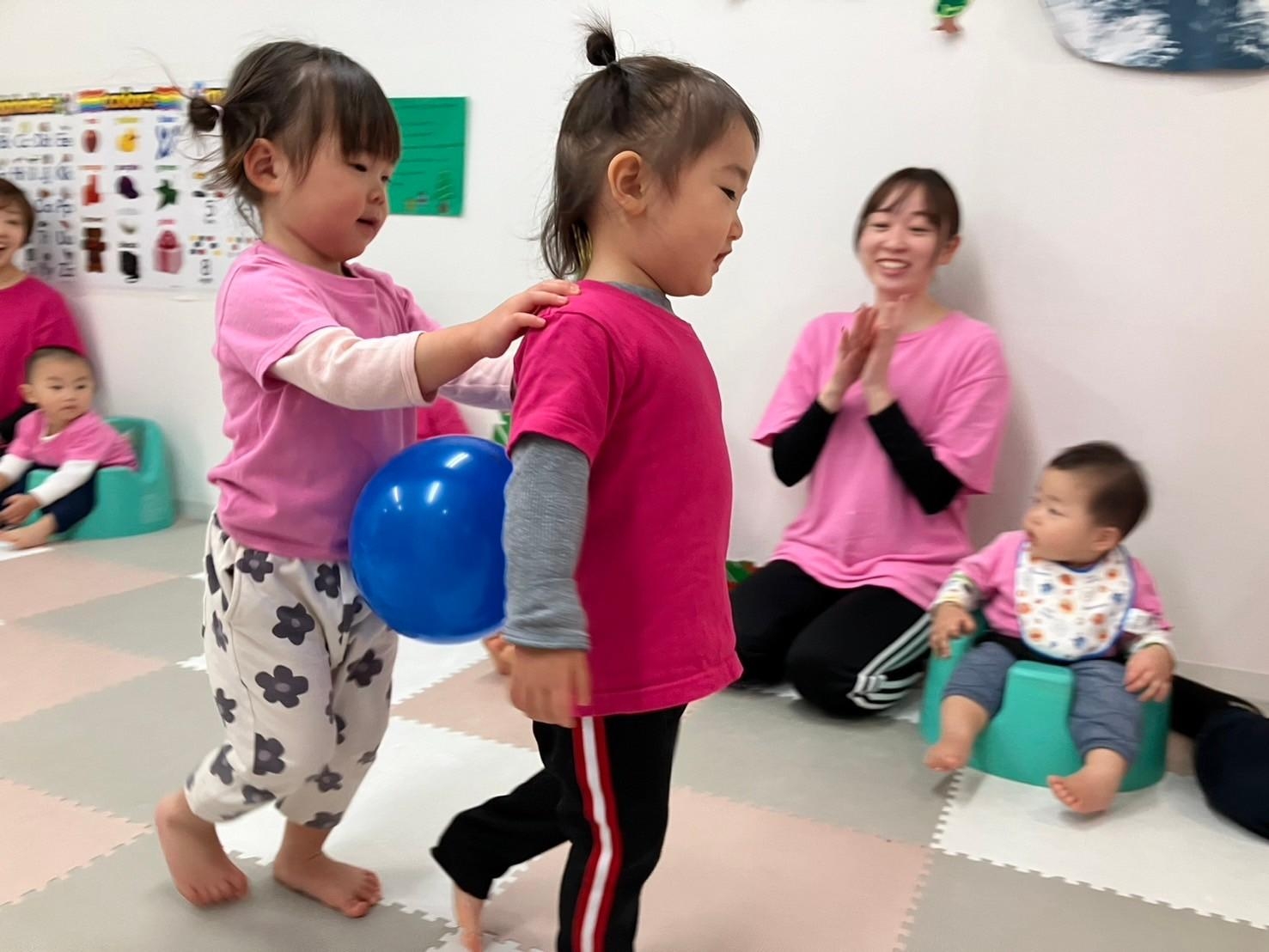 ・SantaBalloon Race トナカイ役の子の背中とサンタ役の子の間に風船を挟んで、落とさないように運ぶゲーム